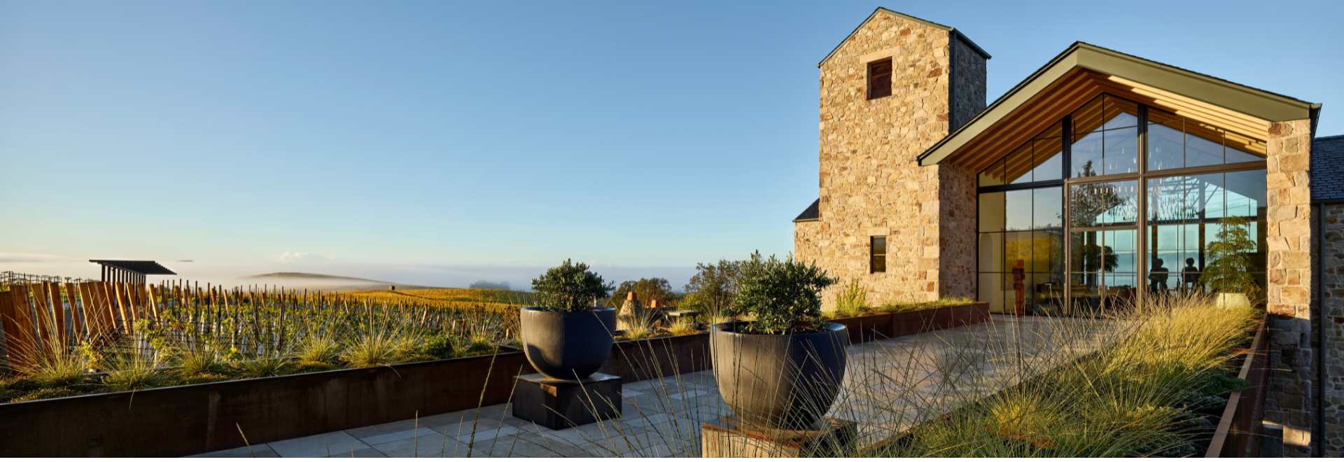 The Residence is the crown jewel of the estate, boasting expansive views of the vineyard and surrounding mountain ranges. In addition to serving as a personal retreat for its proprietors, The Residence welcomes patrons of Roy Estate and their invited guests. For those granted access, the Residence’s stunning design and idyllic surroundings offer the most exclusive setting in which to enjoy the Roy Estate single vineyard Grands Crus wines.